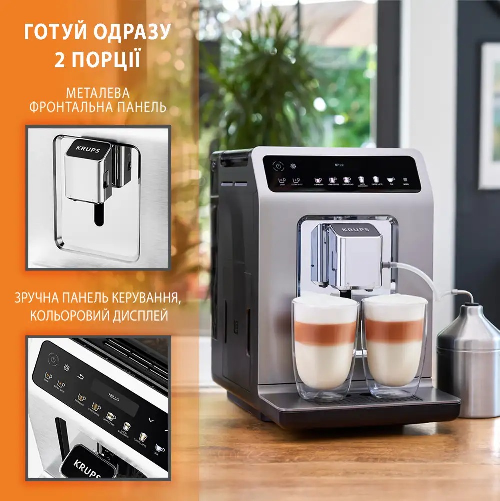 Автоматическая кофемашина KRUPS Evidence Plus легко создает потрясающий кофе как настоящий бариста.