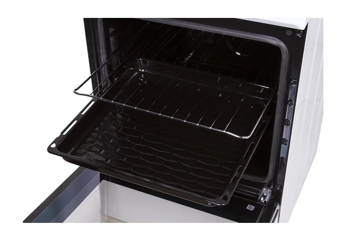 Дверца духовки как изнутри, так и снаружи изготовлена из цельного стекла без винтов и сгибов, что облегчает уход и очистку. В некоторых моделях внутреннее стекло можно вытащить для более тщательной очистки.