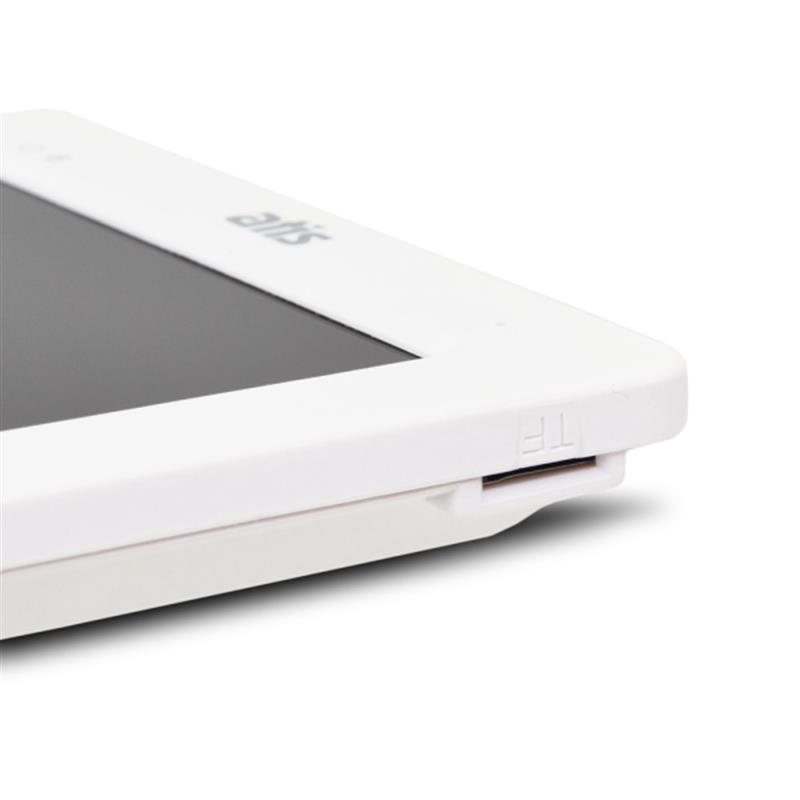 Комплект: видеодомофон и видеопанель. Цветной домофон с TFT экраном 4 дюйма и сенсорными кнопками управления, подключение 2 вызывных панелей, 2 видеокамер, 2 датчиков тревоги. Разговор по громкой связи, есть интерком. Соединение с вызывной панелью 4-проводное. Слот microSD до 32 Гб, питание 100-240V, потребление 8 Вт. Корпус домофона белого цвета. Цветная вызывная панель черного цвета с разрешением 1000ТВЛ и углом обзора 110°, с накладным способом установки.