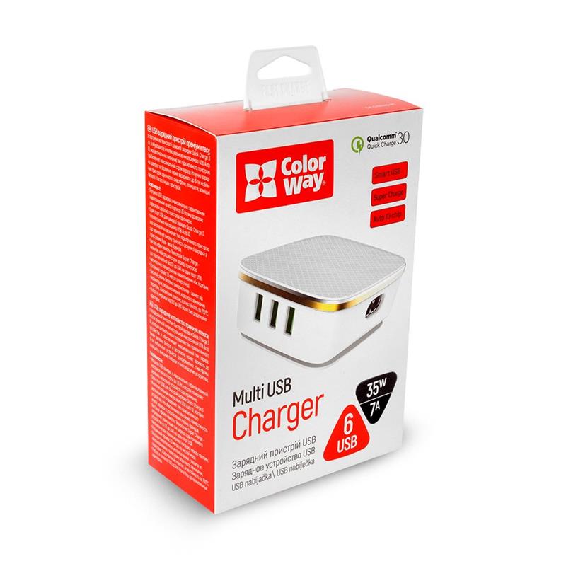 Сетевое зарядное устройство ColorWay 1QC3.0+5AutoID (6USB, 7A) White (CW-CHS019Q-WT)