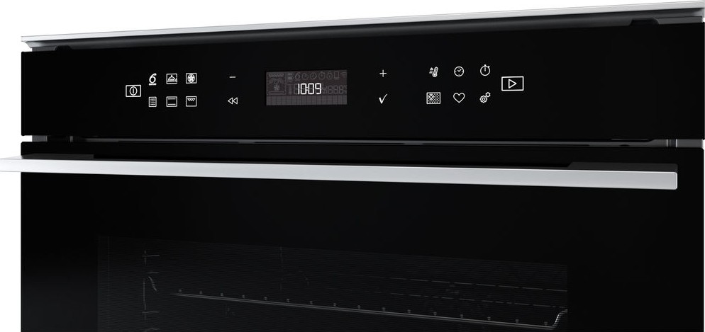 Этот духовой шкаф Whirlpool имеет слайдерную систему полок для удобства использования.