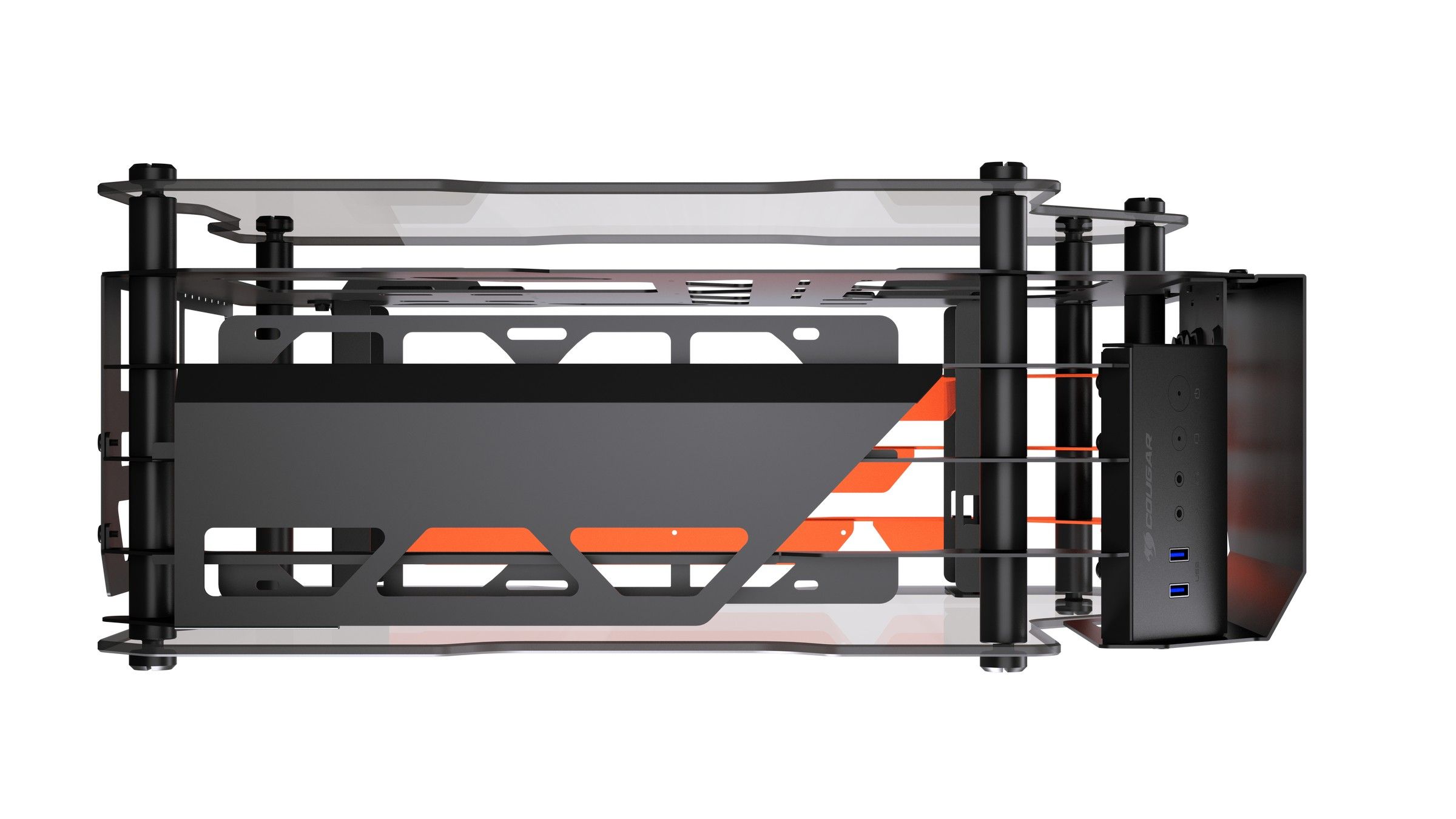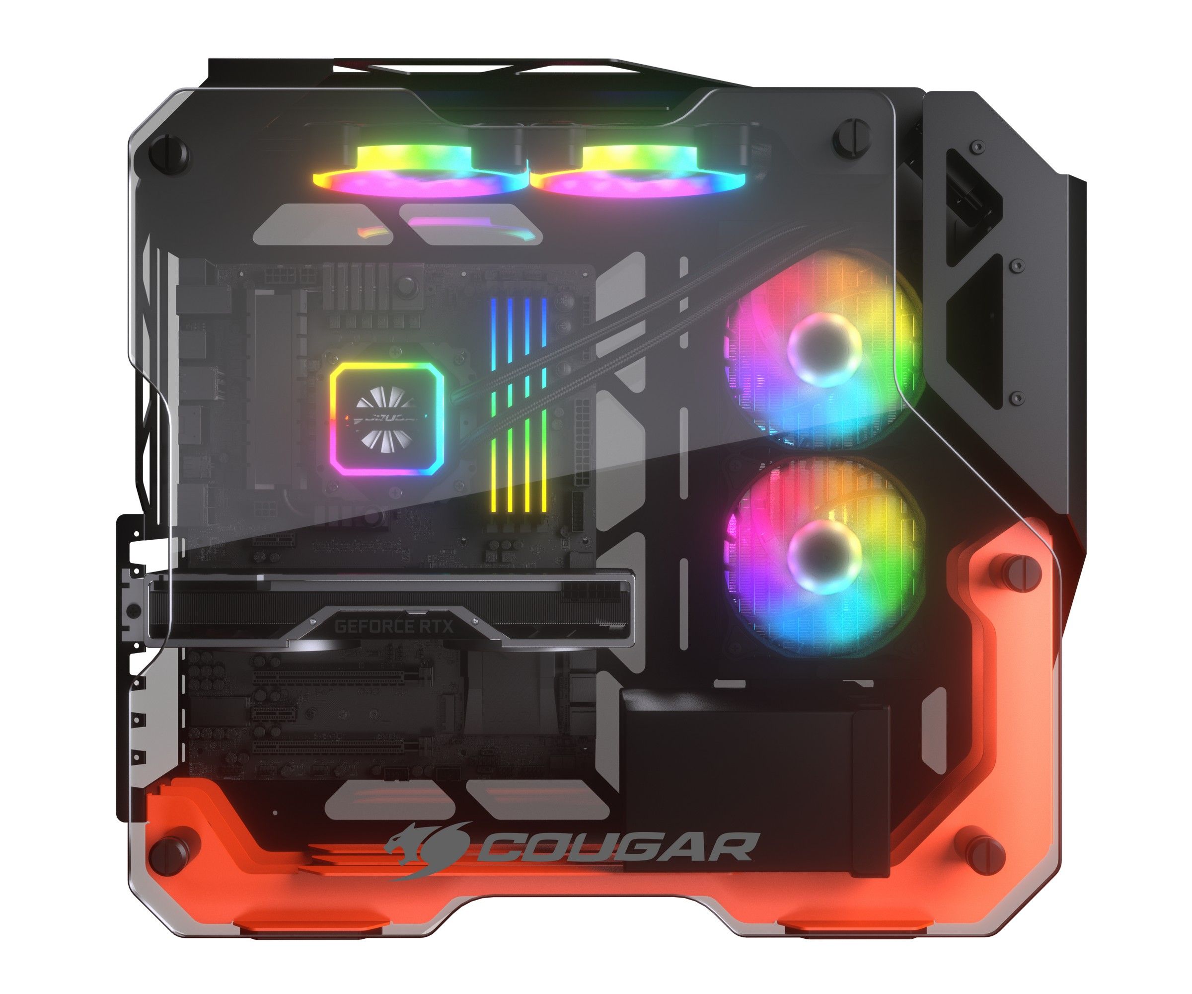 Уникальный дизайн Cougar достигается за счёт гармоничного сочетания металлического шасси и панелей из закаленного стекла, что позволяет демонстрировать установленные Hi-End компоненты. Эта конструкция позволяет создавать настоящие шедевры сборки, ограниченные лишь вашим воображением.