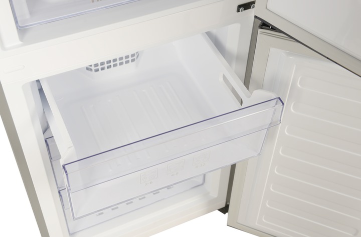 Полка над нижним ящиком оснащена специальным вентиляционным каналом и перегородкой, благодаря чему легко регулировать влажность в ящике, сохраняя овощи и фрукты свежими до 30 дней.