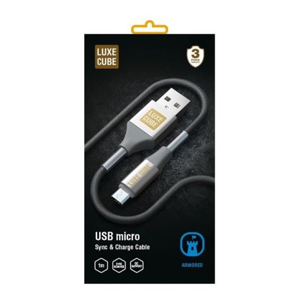 Кабель Luxe Cube Armored USB - microUSB (M/M), 1 м, серый (8886668686105)