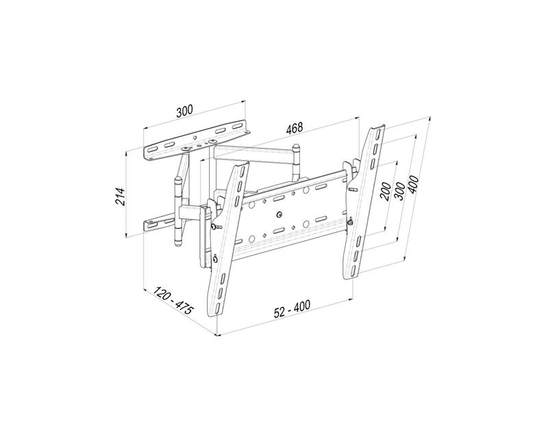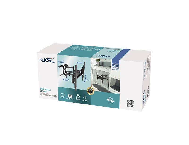 Поворотный кронштейн WMO-6246T подходит для плазменных, LCD, LED телевизоров и мониторов с диагональю 32-65 дюймов и весом до 50 кг. Поддерживает стандарт VESA: от 100 ? 200 мм до 400 ? 400 мм.