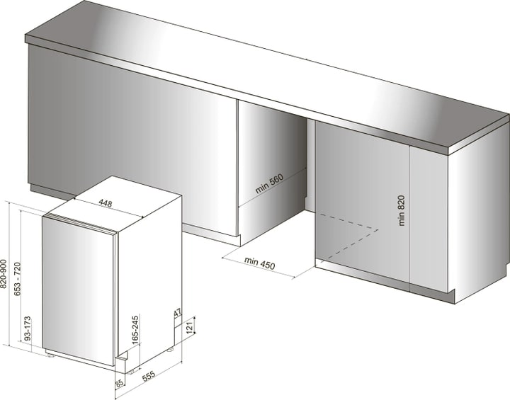 | Габариты встраивания (ШхВхГ) | 450×820×560 мм |
