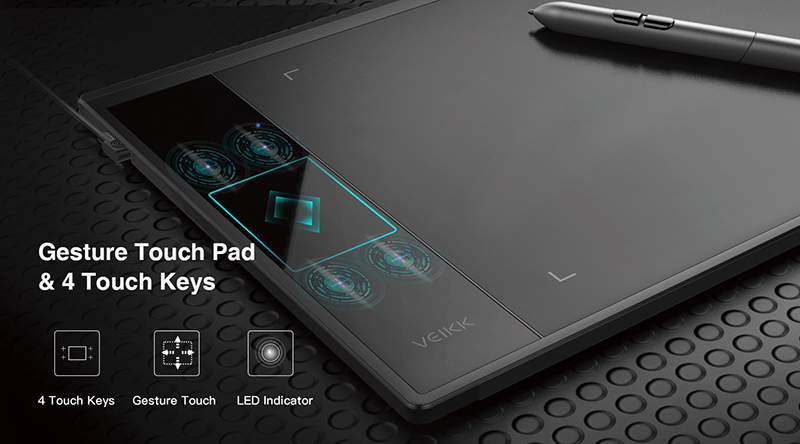 Умная сенсорная панель и 4 настраиваемых сенсорных клавиши. Сенсорная панель упрощает процесс увеличения и уменьшения масштаба, а также отмены/возврата и т.д. Четыре горячие клавиши обеспечивают идеальное сенсорное восприятие. Функции клавиш можно настроить под ваши требования.