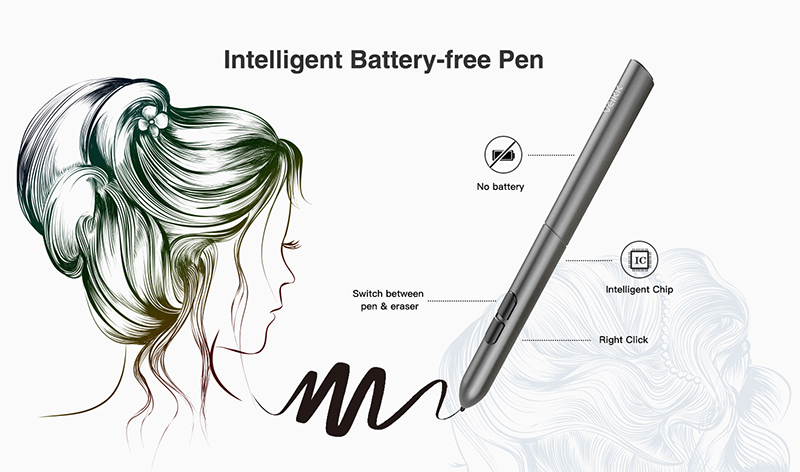 Перо без батареек с 8192 уровнями чувствительности к давлению. Перо с высокой чувствительностью и не требующее заряда, обеспечивает бесперебойное использование.