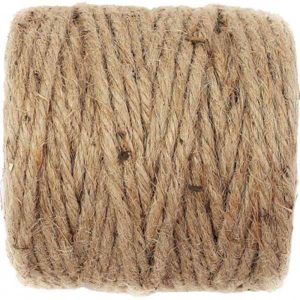 Джутовый садовый шпагат, диаметр 4 мм, длина 100 м, натуральный цвет, 100% джутовое волокно.