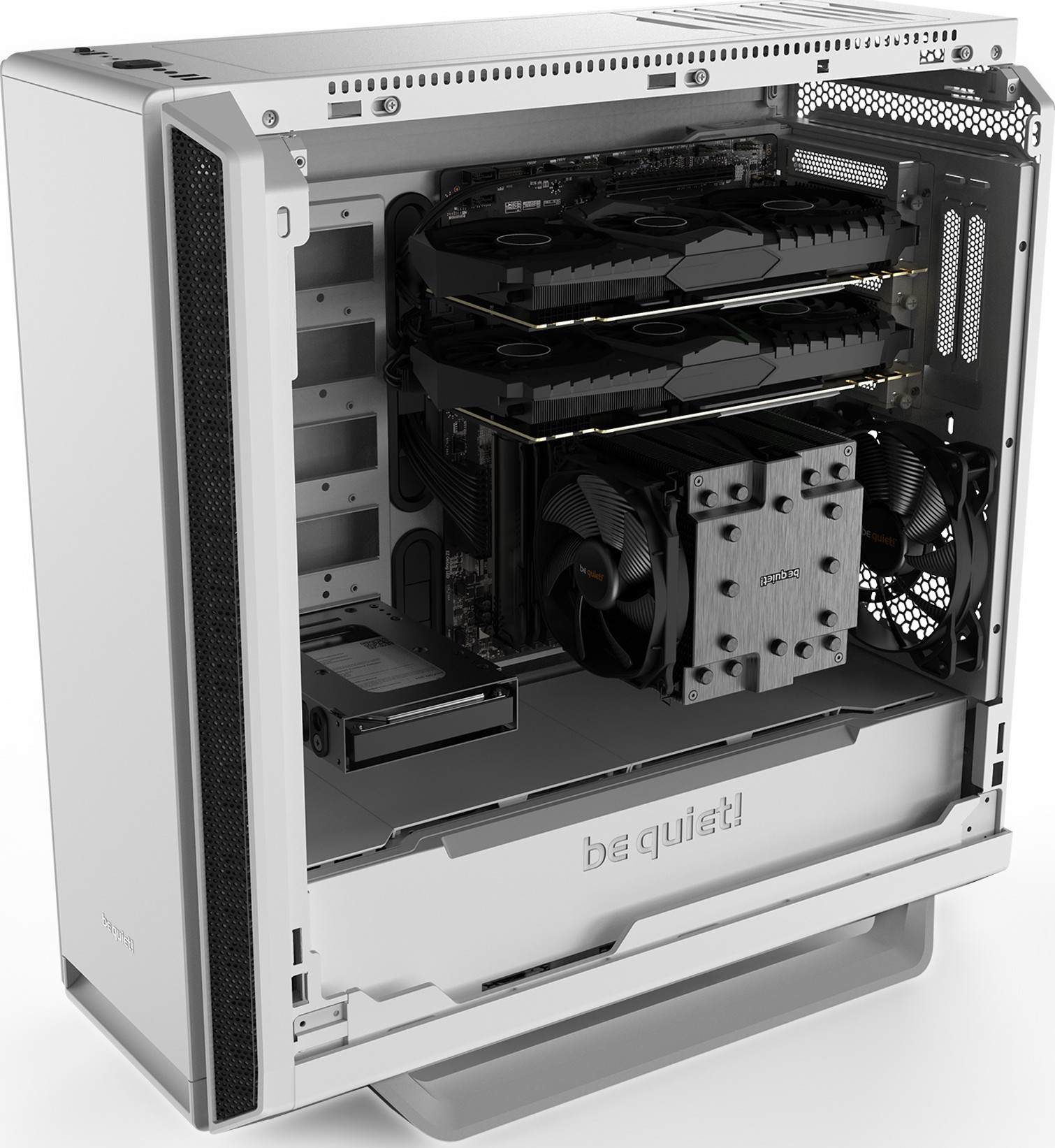 Три установленных вентилятора Pure Wings 2 140 мм с оптимизированными для лучшего воздушного потока лопастями обеспечивают отличный воздушный поток и надежное охлаждение не зависимо от того, выбрали ли вы конфигурацию с высокой производительностью или тишиной работы.