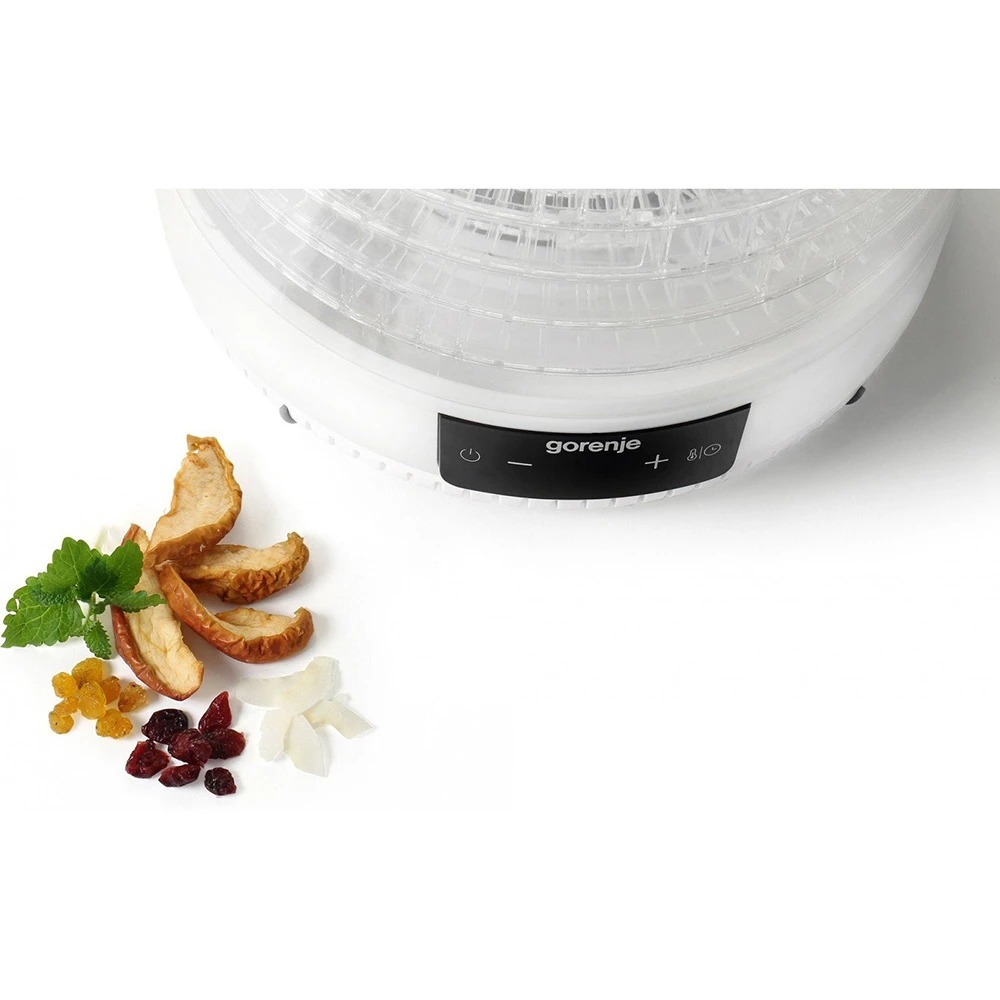 Достоинством сушилки Gorenje FDK500GCW является то, что секции можно регулировать по высоте, а высушивание происходит равномерно абсолютно на всех уровнях. К тому же, Вы можете сразу сушить большое количество разнообразных продуктов. После окончания работы прибор сам автоматически отключается, а прозрачность секций позволяет наблюдать за процессом высушивания.