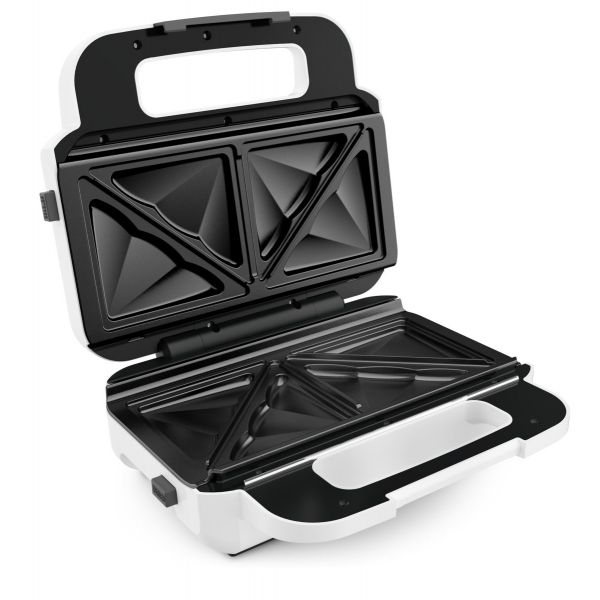 Устройство для приготовления сэндвичей и вафель с двумя наборами насадок в комплекте (панель для вафель и панель для поджаренных треугольных сэндвичей). Благодаря быстрому и легкому приготовлению вы удивите ваших гостей самыми вкусными блюдами! Просто смените панели и порадуйте своих близких, друзей и себя своими кулинарными произведениями: как солеными горячими бутербродами с наполнителями по вашему вкусу, так и ароматными сладкими хрустящими вафлями, от которых будут в восторге и взрослые, и дети.