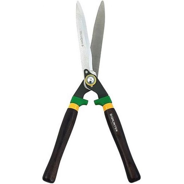 Ножницы для живой изгороди GRUNTEK Panthera 640мм / 230мм - предназначены для профессионального применения. Волнообразные лезвия SK5 с прецизионной заточкой позволяют выполнять точные и мощные срезы даже с небольшими ветками. Лезвие быстро и легко снимается для заточки. С новыми эргономичными ручками из ясеня и надежными упорами для удобного резания. Округлая форма ручки обеспечивает удобный захват для маленьких и больших рук. Наклон лезвия и рукоятки облегчает обрезку краев и веток в труднодоступных местах