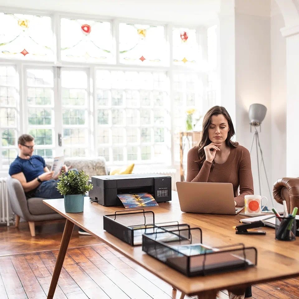 При использовании DCP-T425W вам не нужно находиться рядом с устройством для выполнения ваших задач. Помимо высокоскоростного подключения USB, устройство поддерживает беспроводное подключение, позволяющее выполнять печать в дороге или даже с мобильного устройства.