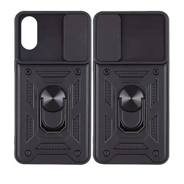 Гибкая силиконовая панель имеет жесткий металлизированный корпус и кольцо-подставку для пальца. Чехол способен выдержать даже сильные удары и царапины.