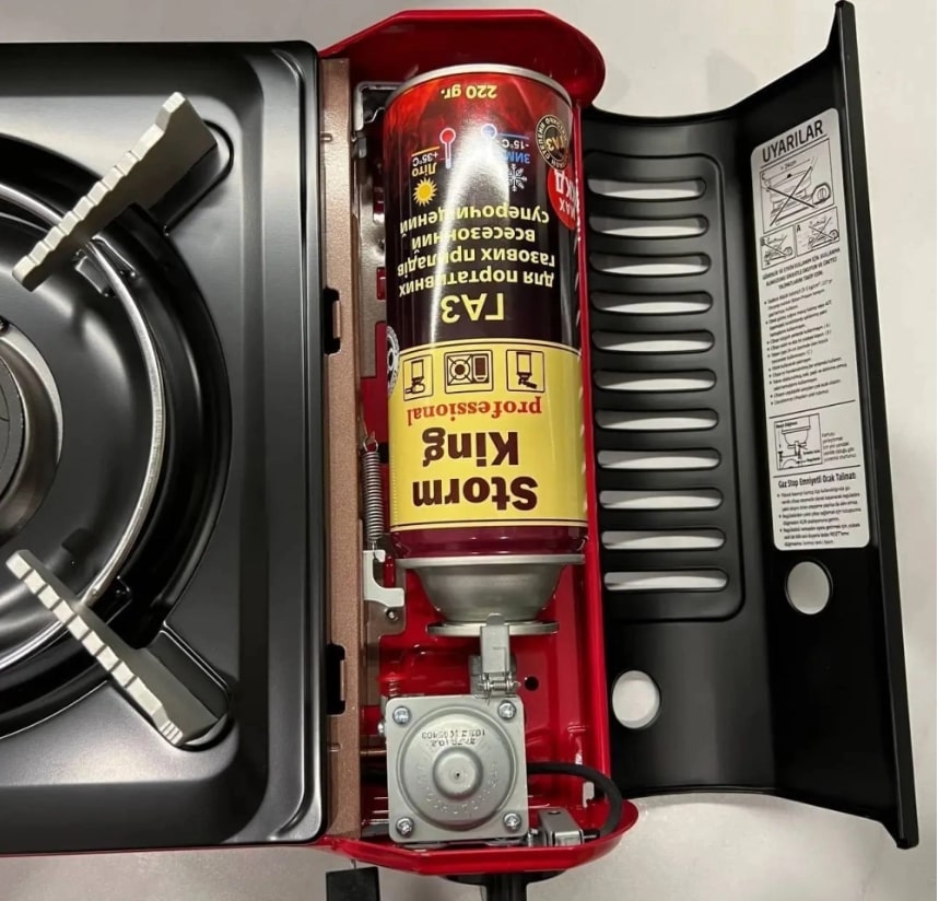 Работает от стандартного цангового баллона или любого другого с подключением через шланг (плита имеет штуцер для присоединения шланга). Поставляется в пластиковом кейсе, который делает транспортировку и хранение плиты более удобным. Комплектация: газовая плита, инструкция; упаковка.