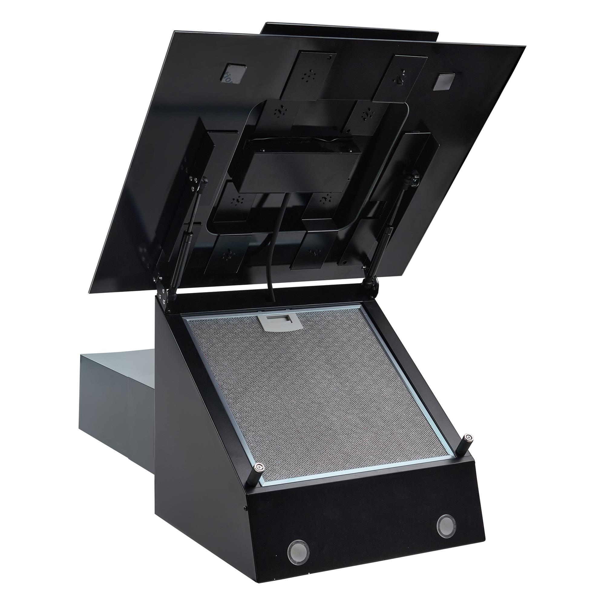 Стильная футуристическая наклонная вытяжка черного цвета шириной 60 см. Сенсорные кнопки и пульт дистанционного управления для удобства управления. Имеет четкие контуры, три уровня управления скоростью для различных потребностей с помощью сенсорных кнопок, качественный алюминиевый фильтр, задерживающий жир и грязь и LED подсветку. Мощность мотора позволяет очистить воздух комнаты размером 15-20 кв метров.