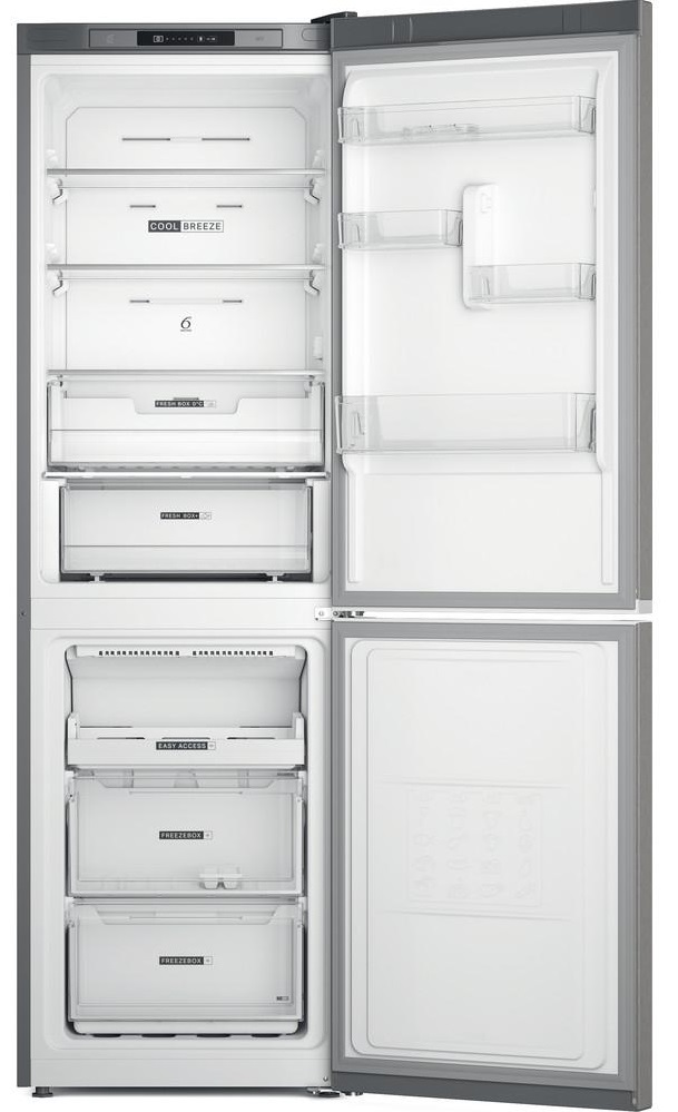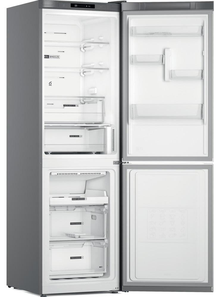 Холодильник Whirlpool W7X 82I OX с нижней морозильной камерой: с системой охлаждения Total NoFrost. С технологией Total NoFrost в холодильнике Whirlpool воздух в морозильной камере автоматически осушается, благодаря чему не нужно тратить время на размораживание. Кроме того, замороженные продукты не прилипают к стенкам, этикетки остаются разборчивыми, а место для хранения продуктов - чистым.