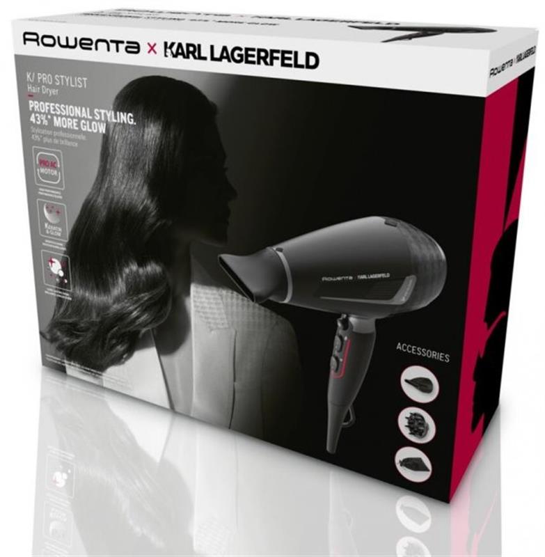 Фен Rowenta KARL LAGERFELD K/Pro Stylist CV888LF0. Коллекция премиум-класса Rowenta x KARL LAGERFELD содержит передовую технологию, которая проста в использовании и дает вам возможность создавать безупречный образ, каждый раз предлагая безграничные возможности, уверенность и стиль. как из парикмахерской или барбершопа. Все изделия исполнены в премиальном дизайне черного цвета с фирменным узором KARL LAGERFELD.