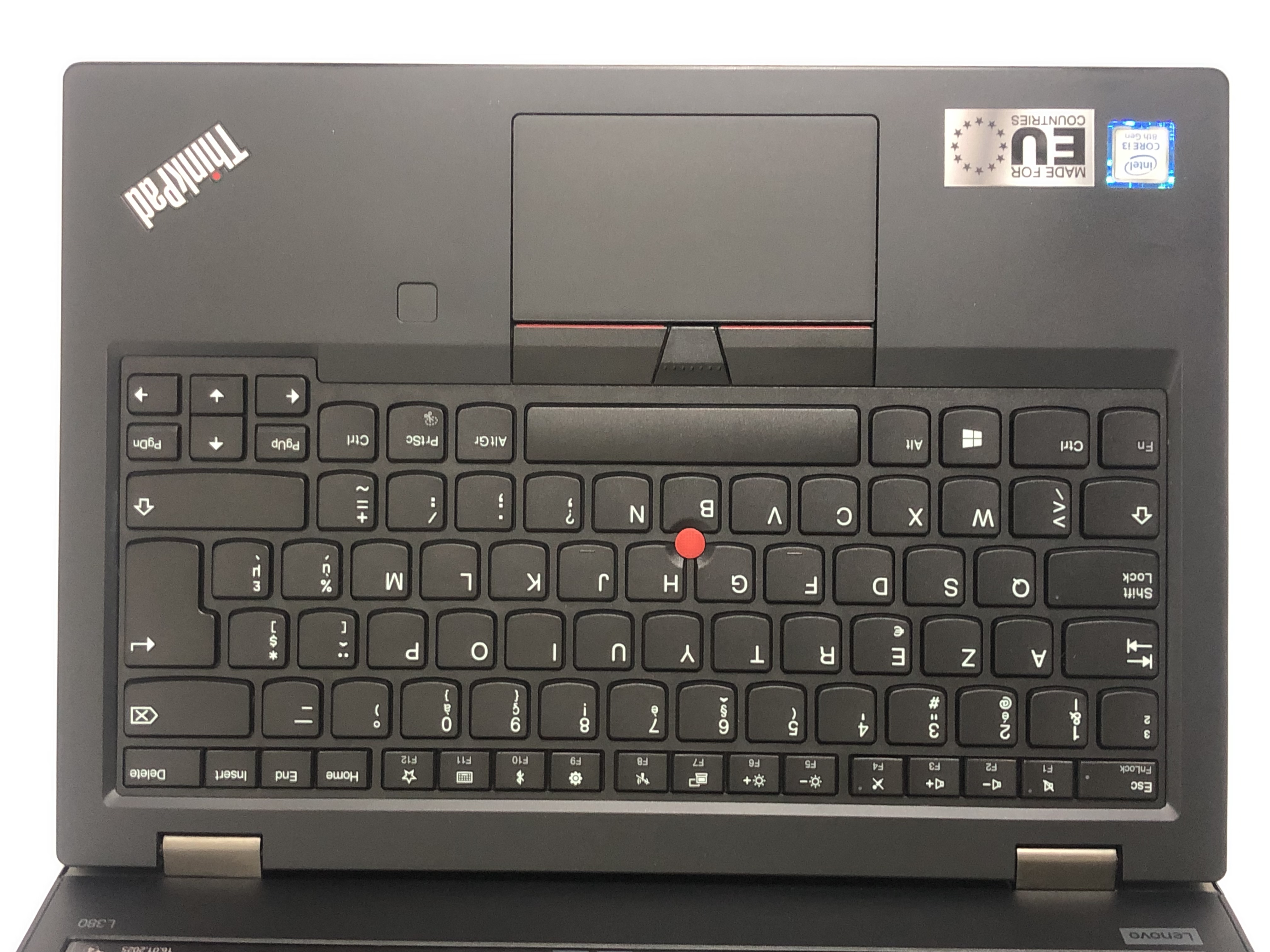 Ноутбук Lenovo ThinkPad L380 (LTPL380E910);13,3" (1920x1080) IPS матовый / Intel Core i3-8130U (2,20 - 3,40 GHz) / 8GB RAM / 256GB SSD / Intel® UHD Graphics 620 / no DVD / Wi-Fi / Bluetooth / Webcam / Windows 10 / подсветка клавиатуры / сканер отпечатка / 1.46 кг, Б/у