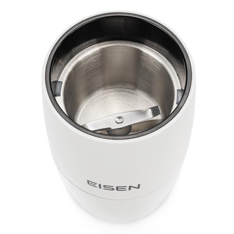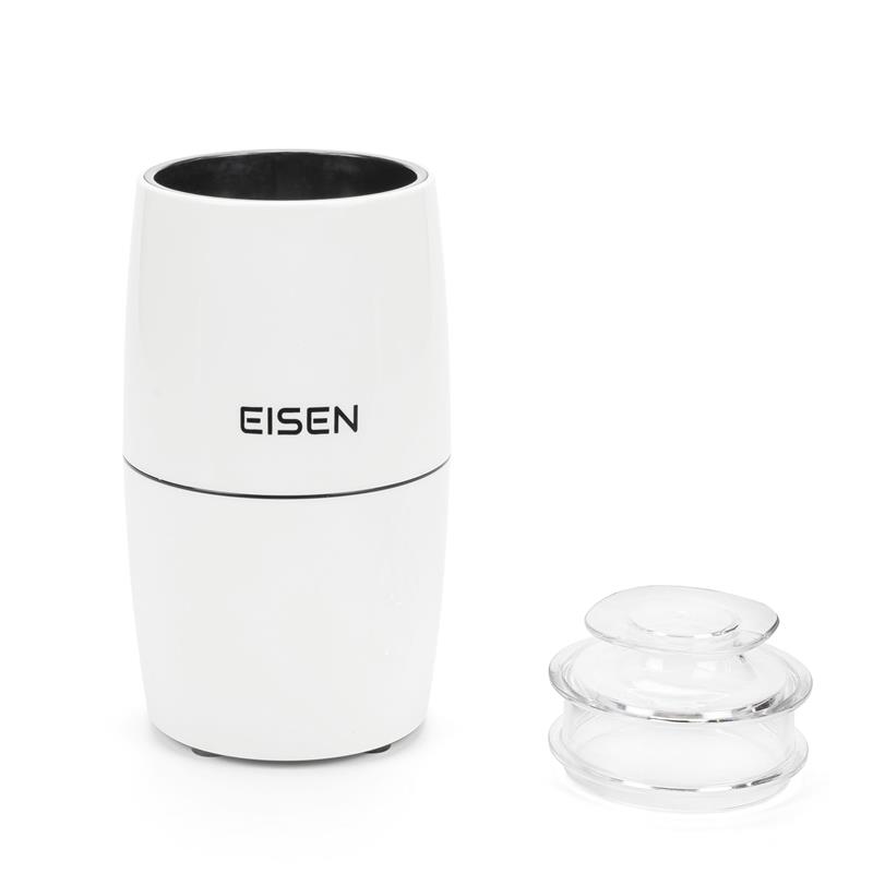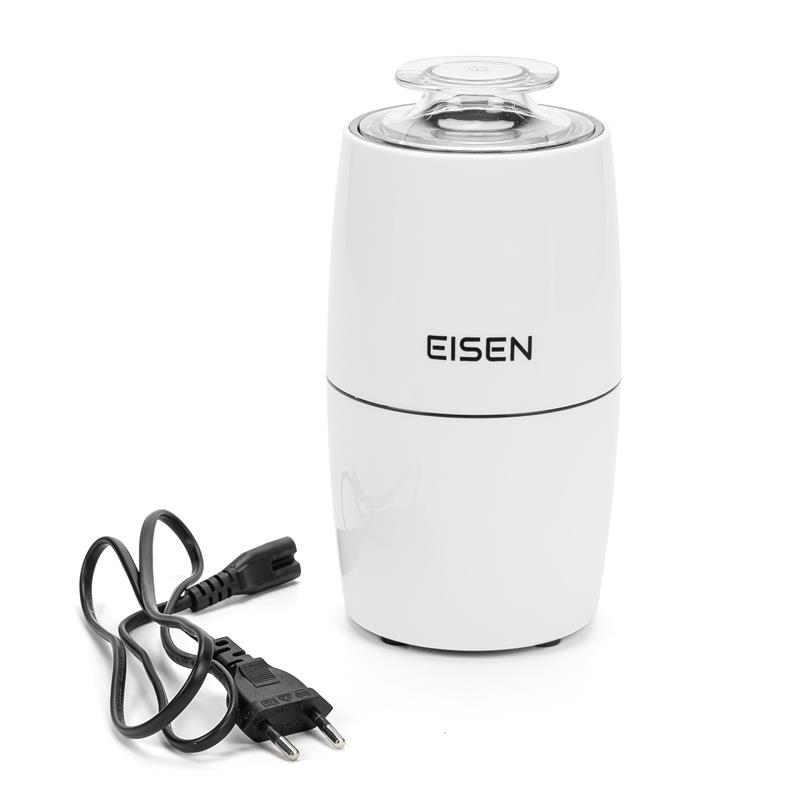 Современная модель кофемолки EISEN ECG-025 представлена в белом. Эргономичная форма и продуманный дизайн создают комфортное и надежное использование прибора. Корпус изготовлен из качественного пластика, а ножи – из прочной нержавеющей стали. Прозрачная крышка помогает регулировать уровень помола в процессе работы устройства. Кофемолка отличается компактностью и лёгкостью, занимая минимум места на кухне.