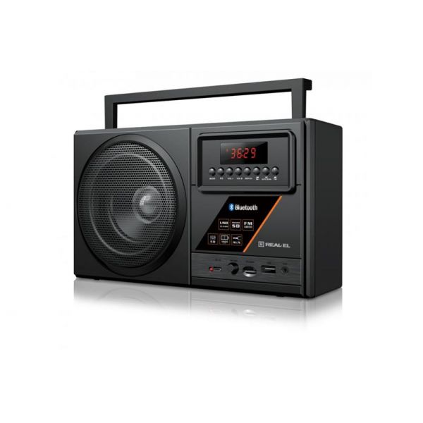 REAL-EL X-700 – не просто радиоприемник, а настоящий мобильный аудиоцентр. Помимо приема радиопрограмм, он может выступать в качестве Bluetooth-колонки и подключаться к внешним источникам сигнала с помощью провода. Наличие внешнего плеера при этом необязательно, устройство поддерживает воспроизведение MP3-файлов с накопителей USB-flash и карт microSD