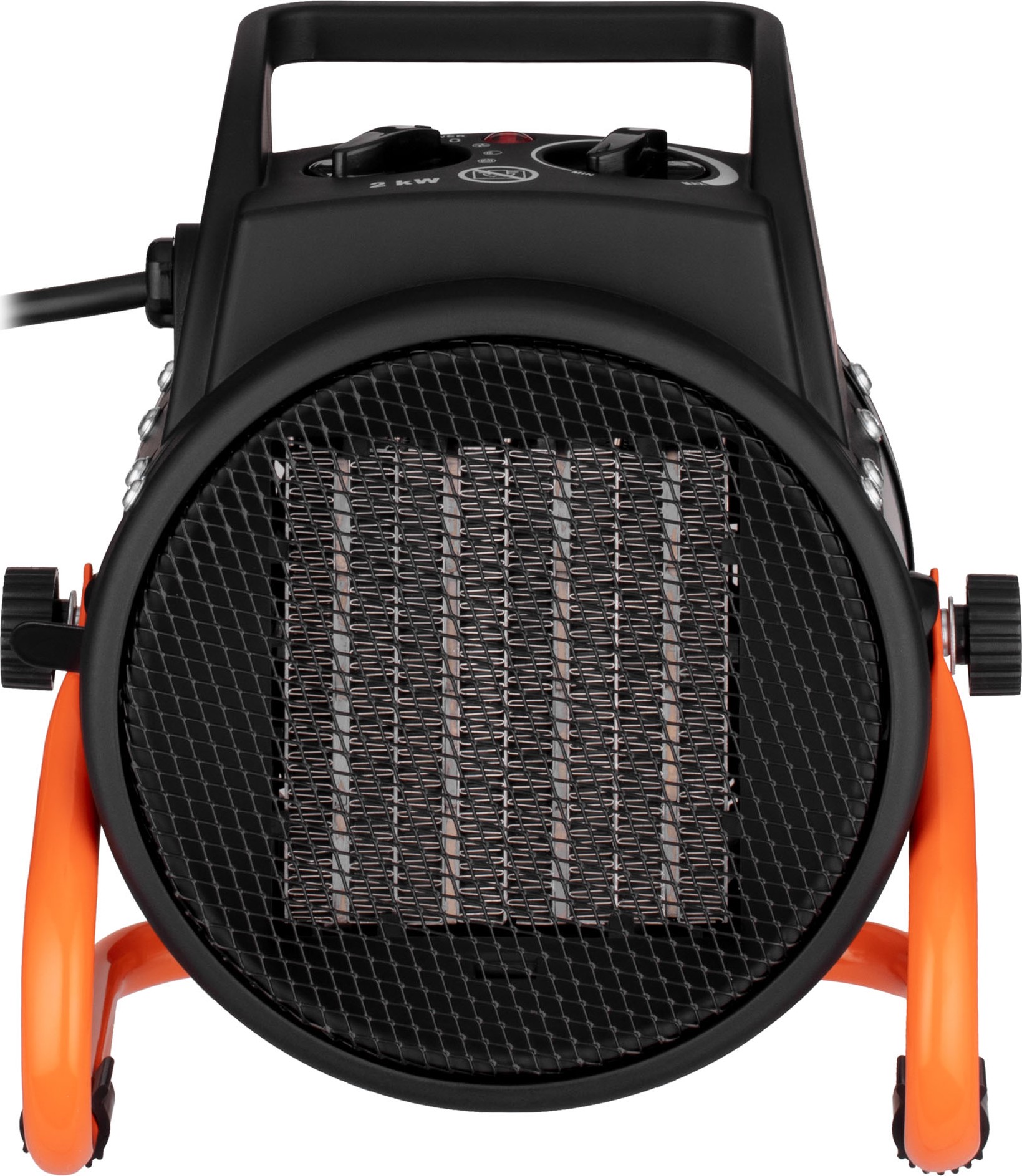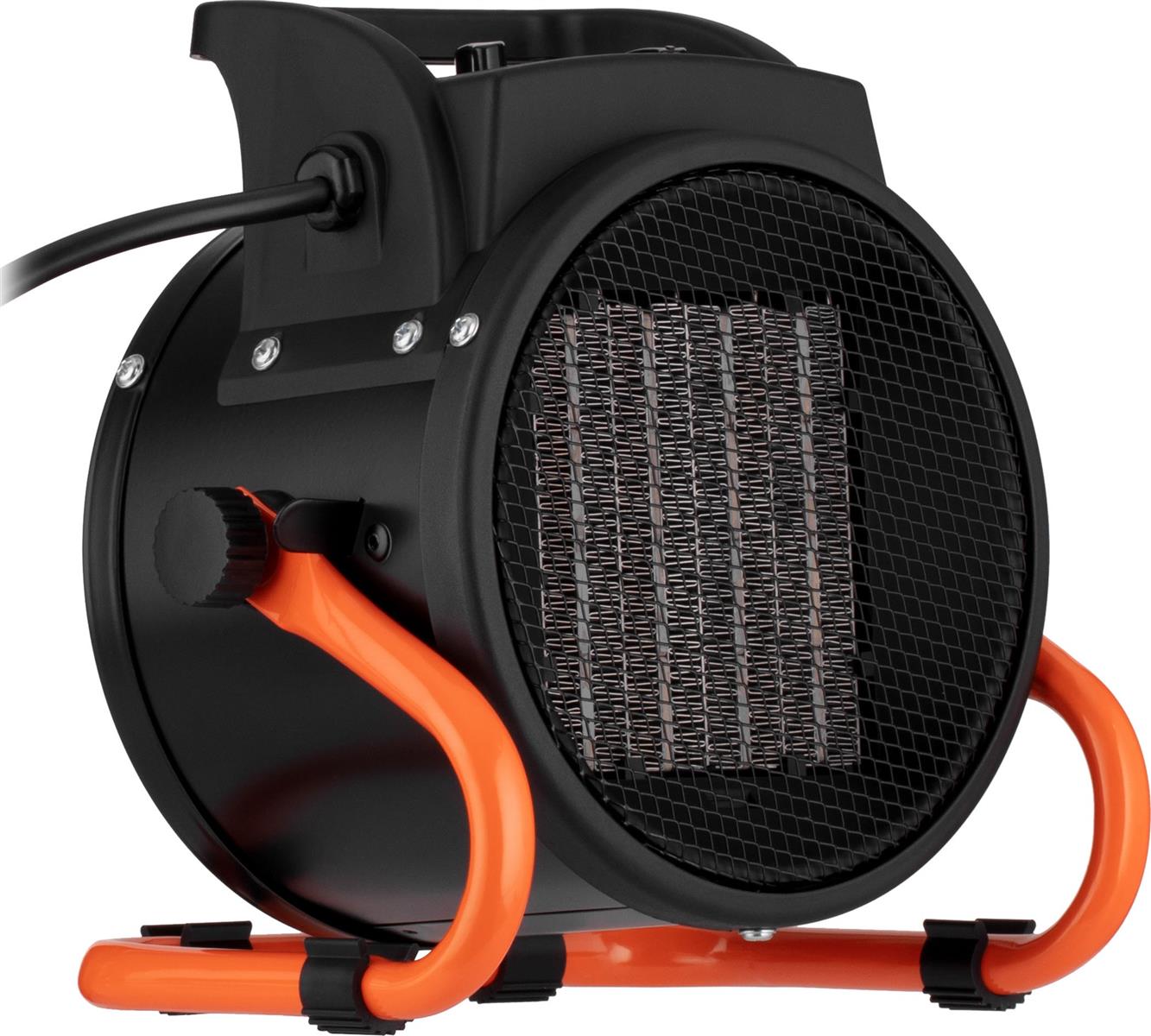 Корпус 2E-AHC2000 действительно напоминает пушку, которая испускает теплый воздух через специальные отверстия, распространяемые помещением. Материал корпуса прочный, износостойкий, не подвержен ржавчине и коррозии благодаря порошковому покрытию. Поток воздуха объемом 197 м3/ч попадает в помещение площадью 20 м2 через специальную решетку на корпусе.