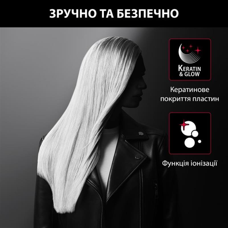 Эксклюзивное покрытие Keratin & Glow в сочетании с ионным генератором обеспечивает исключительный блеск, уменьшая статическое электричество и пушистость волос - для гладких, блестящих и сияющих волос.