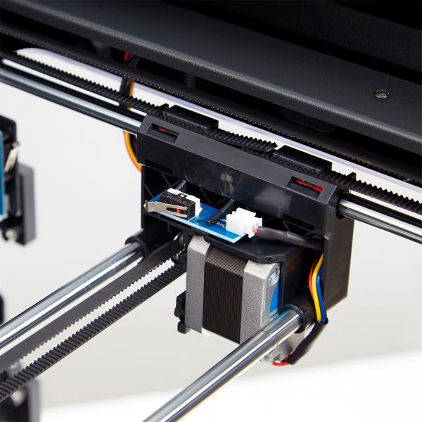 Профессиональный тип механики XY-head/Z-platform, использование валов и коротких зубчатых ремней вместо длинных (снижена вероятность растяжения ремней, улучшает позиционирование и качество печати).