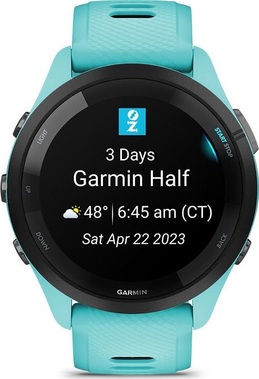 Характеристики Смарт-часы Garmin Forerunner 265 Black Bezel with Aqua Case and Aqua/Black Silicone Band (010-02810-52)