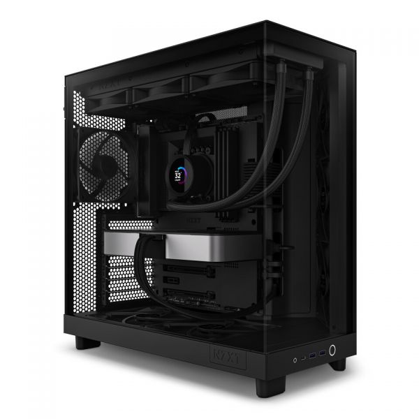 Ощутите максимальную производительность в инновационном компактном двухкамерном устройстве. Отдавая приоритет охлаждению графического процессора, панорамное стекло H6 Flow демонстрирует интерьер, освобождая пространство для улучшения воздушного потока.