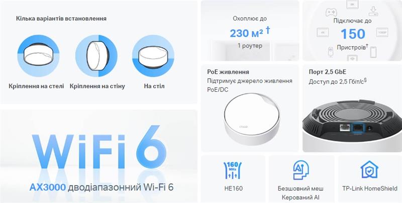 Характеристики WiFi Mesh система TP-Link Deco X50 PoE (1-pack)