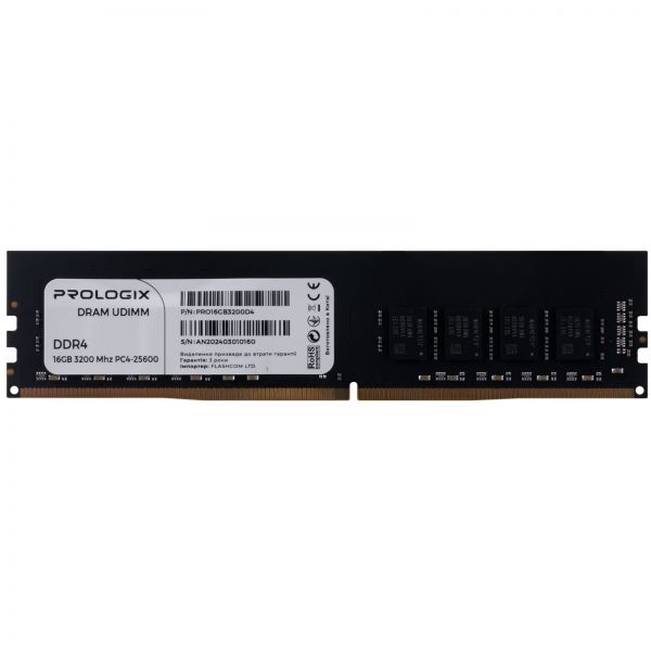 Характеристики Модуль памяти DDR4 16GB/3200 Prologix (PRO16GB3200D4)