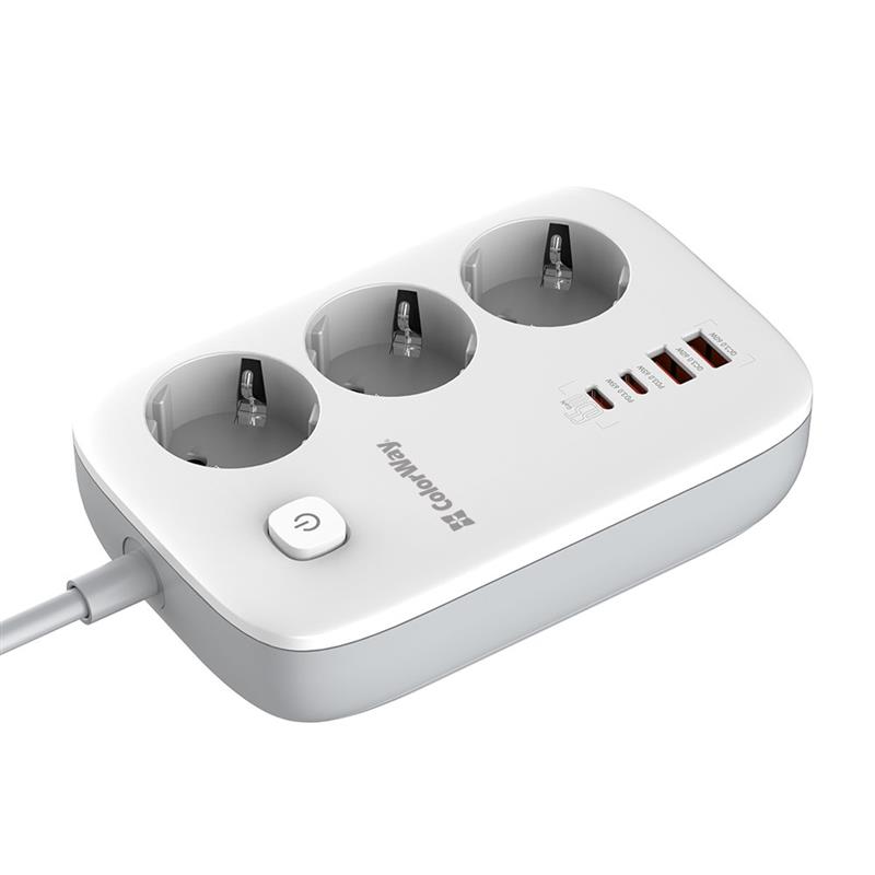 Фильтр питания ColorWay CW-CHE34PDW GaN3 Pro PD 65W (2USB-A + 2 TYPE-C) 3 розетки, 4 USB, 2 м, белый