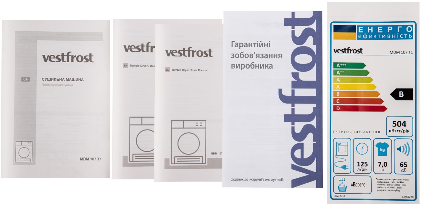 Характеристики Сушильная машина Vestfrost MDM 107 T1