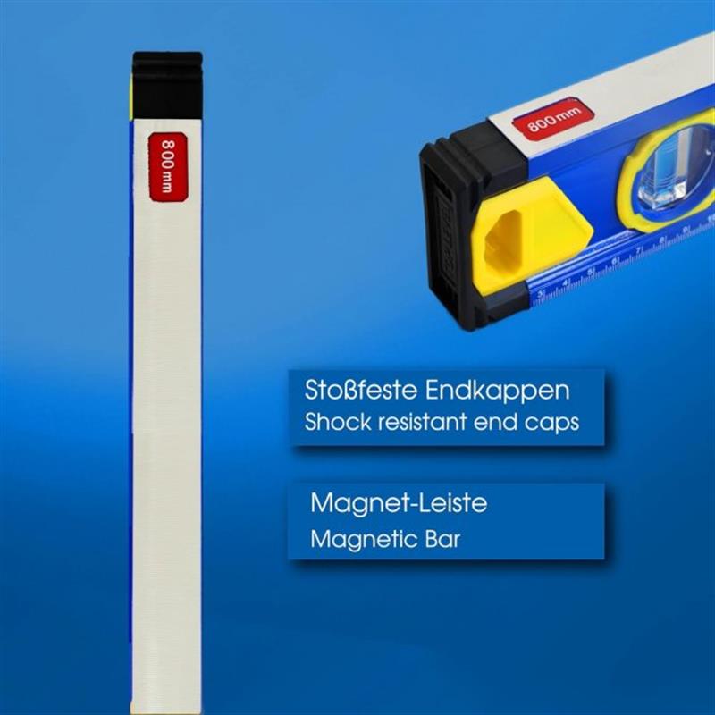 Компактный уровень длиной 80 см с 3 капсулами и 2 магнитными лентами. Шкала измерений и защита от ударов обеспечивают точные измерения и надежность на строительной площадке, ремонте и т.д.