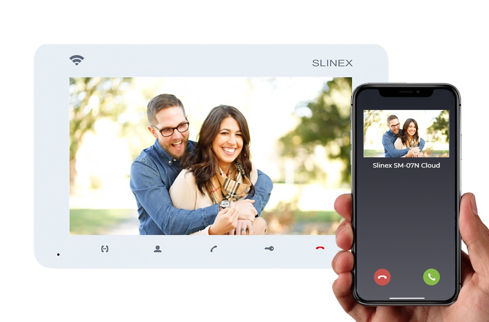 Silnex SM-07N Cloud – это первый домофон в серии SM с функцией переадресации вызовов на мобильное приложение Slinex Smart Call. SM-07N Cloud – это идеальное решение для пользователей, которые ищут недорогой, но полнофункциональный видеодомофон с большим экраном и возможностью работы с мобильным приложением. Помимо ультратонкого корпуса, доступного в двух цветах, SM-07N Cloud отличается наличием слота для внешней карты памяти, используемой для сохранения фотографий и видео.