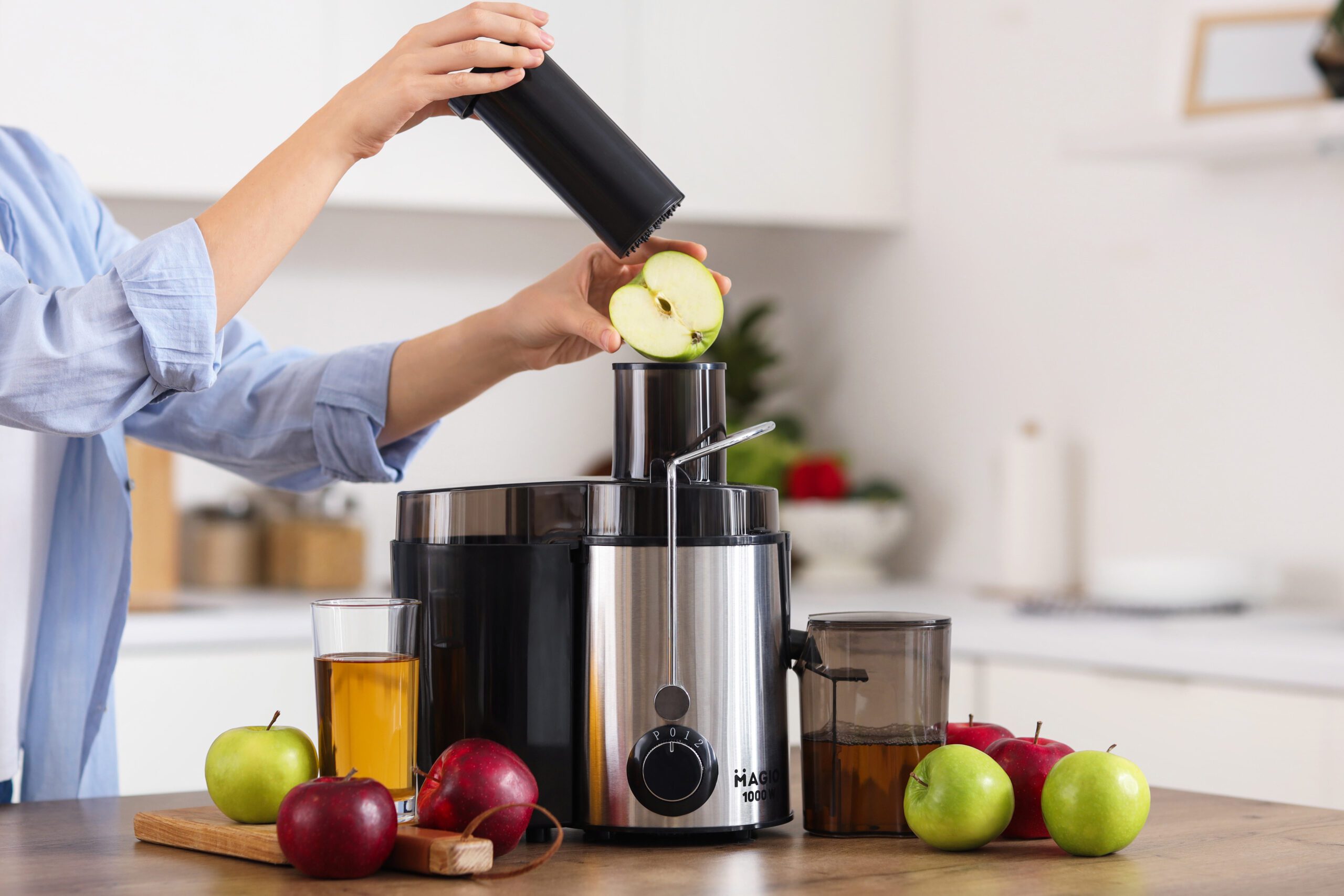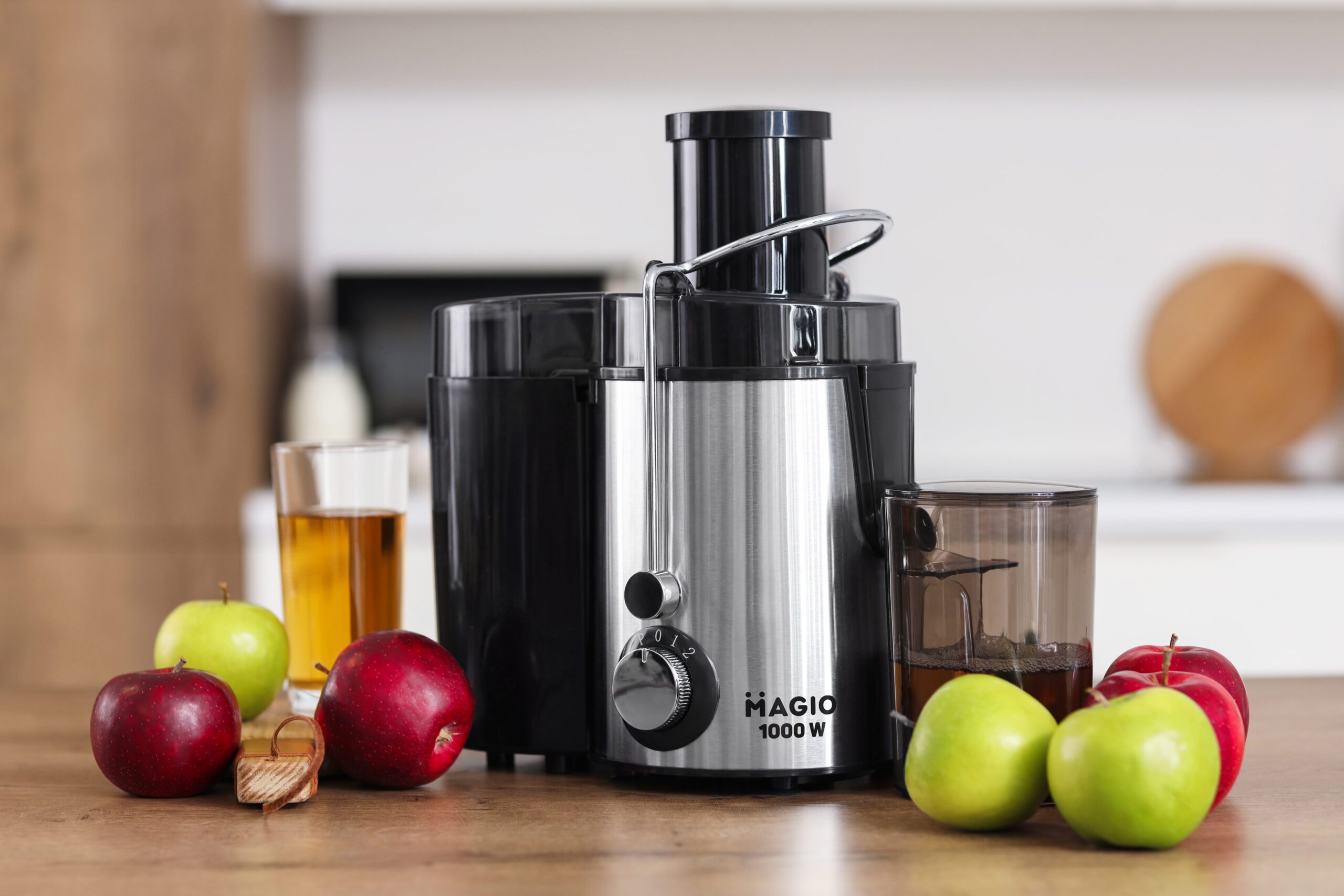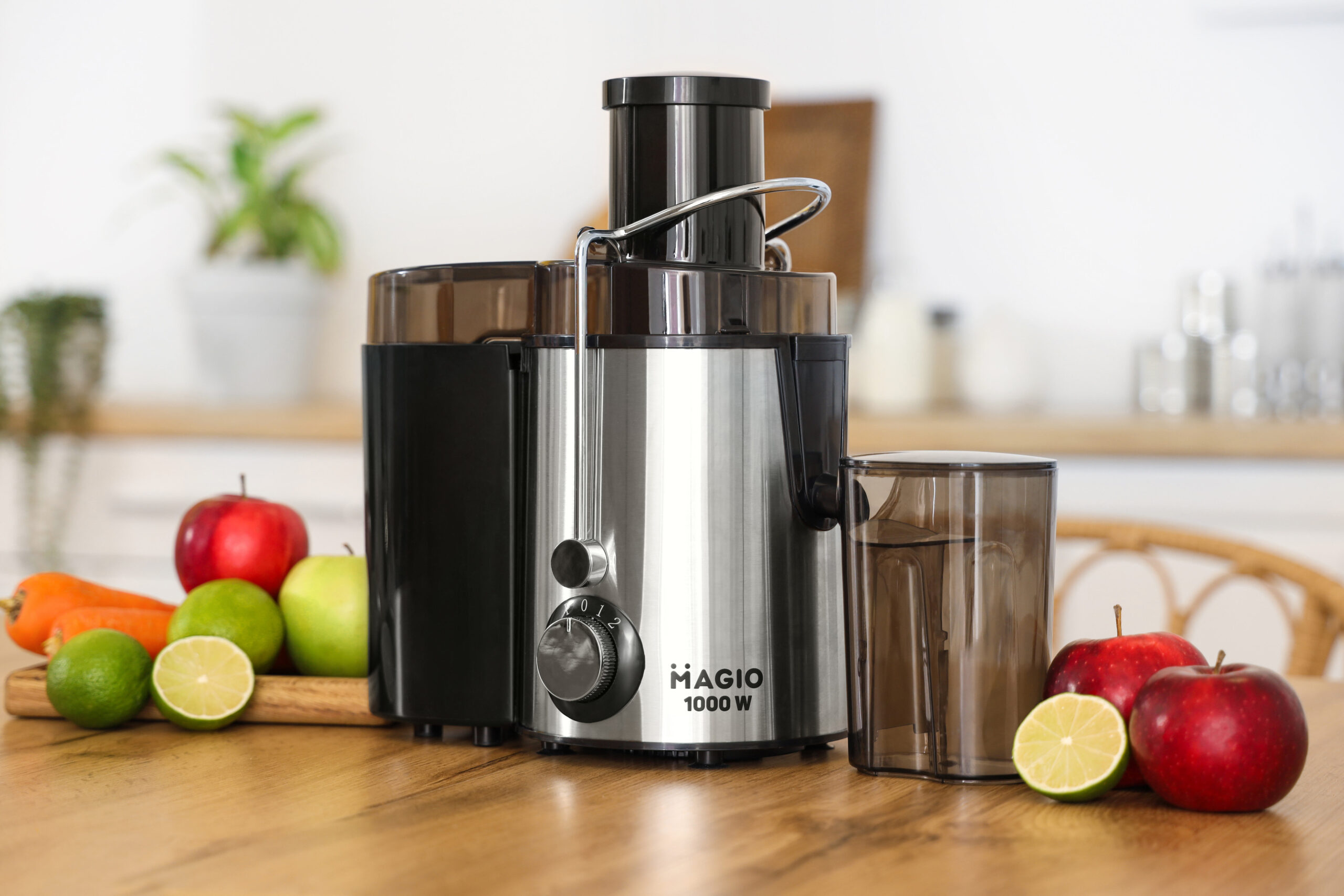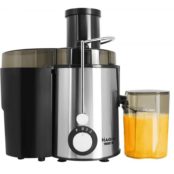 Magio MG-187 – это универсальная соковыжималка, которая позволит готовить сок практически из любых овощей и фруктов. Устройство имеет большую мощность и соответственно скорость оборотов, то есть соковыжималка способна выжимать из продукта максимум при минимальных затратах времени. Вы сможете сделать сок из любого овоща или фрукта, будь то апельсин, персик, виноград или твердая морковь без проблем. Она имеет два режима скорости и сможет работать с твердыми и мягкими продуктами. Механическое управление непритязательно в эксплуатации и не боится перепадов напряжения.