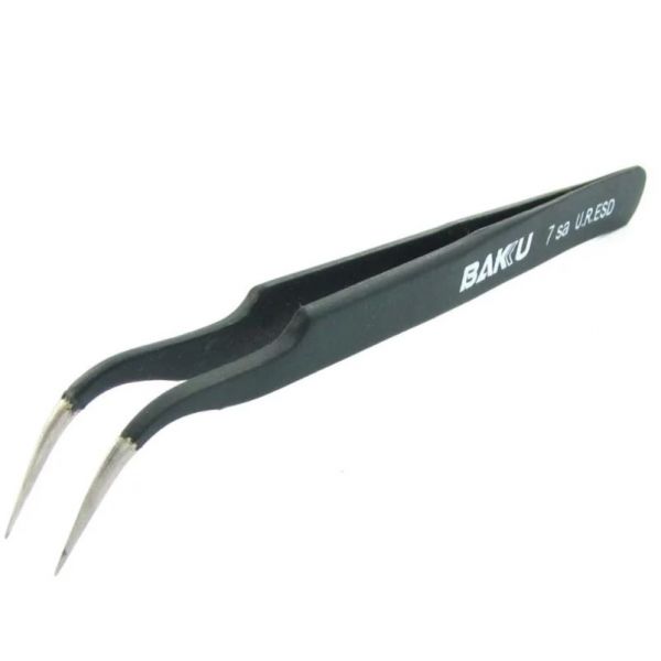 Пинцет изогнутый Baku A8 7 Sa U.R.ESD с чёрным антистатическим покрытием (A15758)