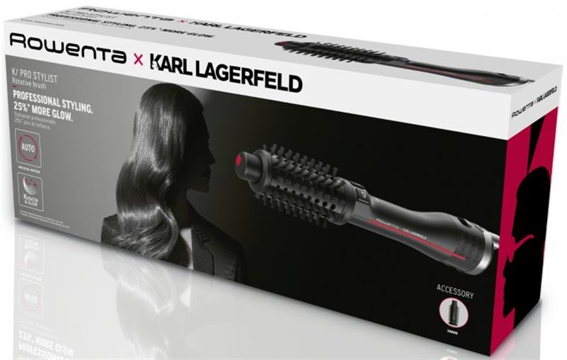 Фен-щетка Rowenta KARL LAGERFELD K/PRO STYLIST CF961LF0. Вращающийся фен - щетка с горячим воздухом Rowenta x KARL LAGERFELD K/Pro Stylist CF961LF0 позволяет легко применять профессиональные техники укладки феном в домашних условиях. Укладка салонного уровня в домашних условиях. Вращающаяся фэн-щетка повторяет движения профессиональных стилистов, обеспечивая отличный результат. Эксклюзивное покрытие Keratin & Glow объединяет pro-Keratin и турмалин – в сочетании с ионизацией волосы становятся гладкими, блестящими, послушными и менее спутываются.