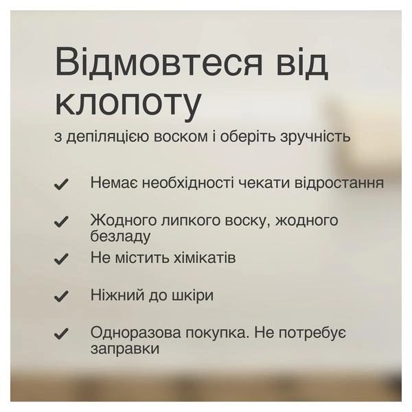 Вам больше не нужно ждать, пока волосы отрастут, как это можно сделать с другими средствами для удаления волос (например, воском). Этот эпилятор практичен в использовании и устраняет необходимость трудоемкой эпиляции или визитов.