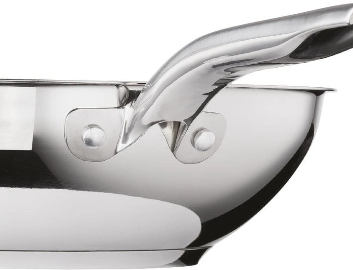 Благодаря сверхпрочным заклепкам прочная ручка без зазоров обеспечивает повышенную безопасность и долговечность с течением времени, а прочный и удобный захват имеет решающее значение. Удобная металлическая ручка, которая не нагревается во время приготовления.