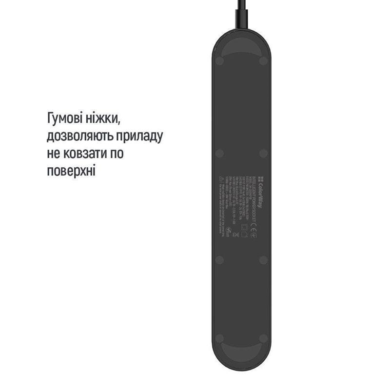 Фильтр питания ColorWay CW-CHE44PDB 4 розетки, 4USB (Type-C PD20W + 3USB QC3.0) (45W), 2м, Black