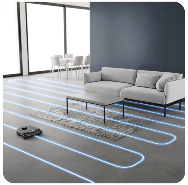 Робот-пылесос охватывает до 120 м2 за один проход и возвращается к док-станции для подзарядки перед автоматическим восстановлением уборки.