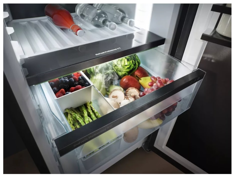 Вам всегда будет приятно открывать отделение BioFresh: вас будут радовать не только свежие продукты, но и то, что отделение легко открывается, а закрывается мягко и автоматически. Это возможно благодаря телескопическим направляющим. А благодаря увеличенной ширине вы будете видеть все, что лежит в отделении.