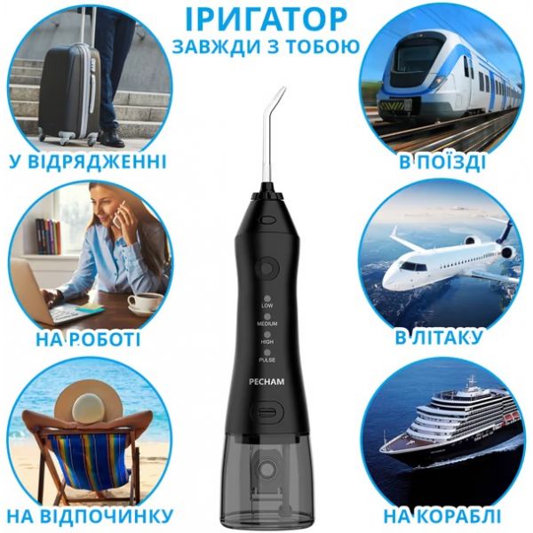 Иригатор Pecham Travel Black PC-1581 обеспечивает профессиональный уход за полостью рта, помогая поддерживать здоровье зубов и десен в любое время и в любом месте. Отличное решение для тех, кто ценит качество и удобство.
