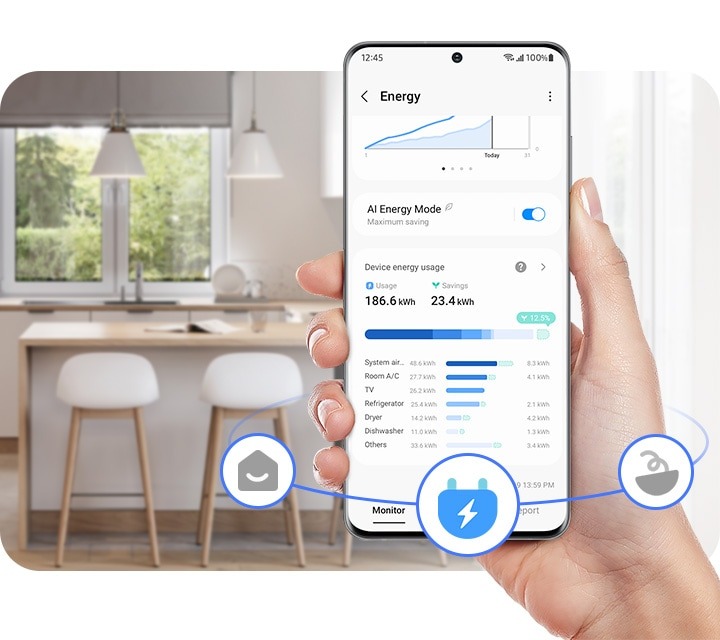 Управляйте потреблением энергии, чтобы сократить выбросы углекислого газа в атмосферу и сэкономить деньги. SmartThings Energy дает советы по энергоэффективности. Он также отслеживает энергопотребление приборов в режиме реального времени и сравнивает его с предыдущим месяцем.