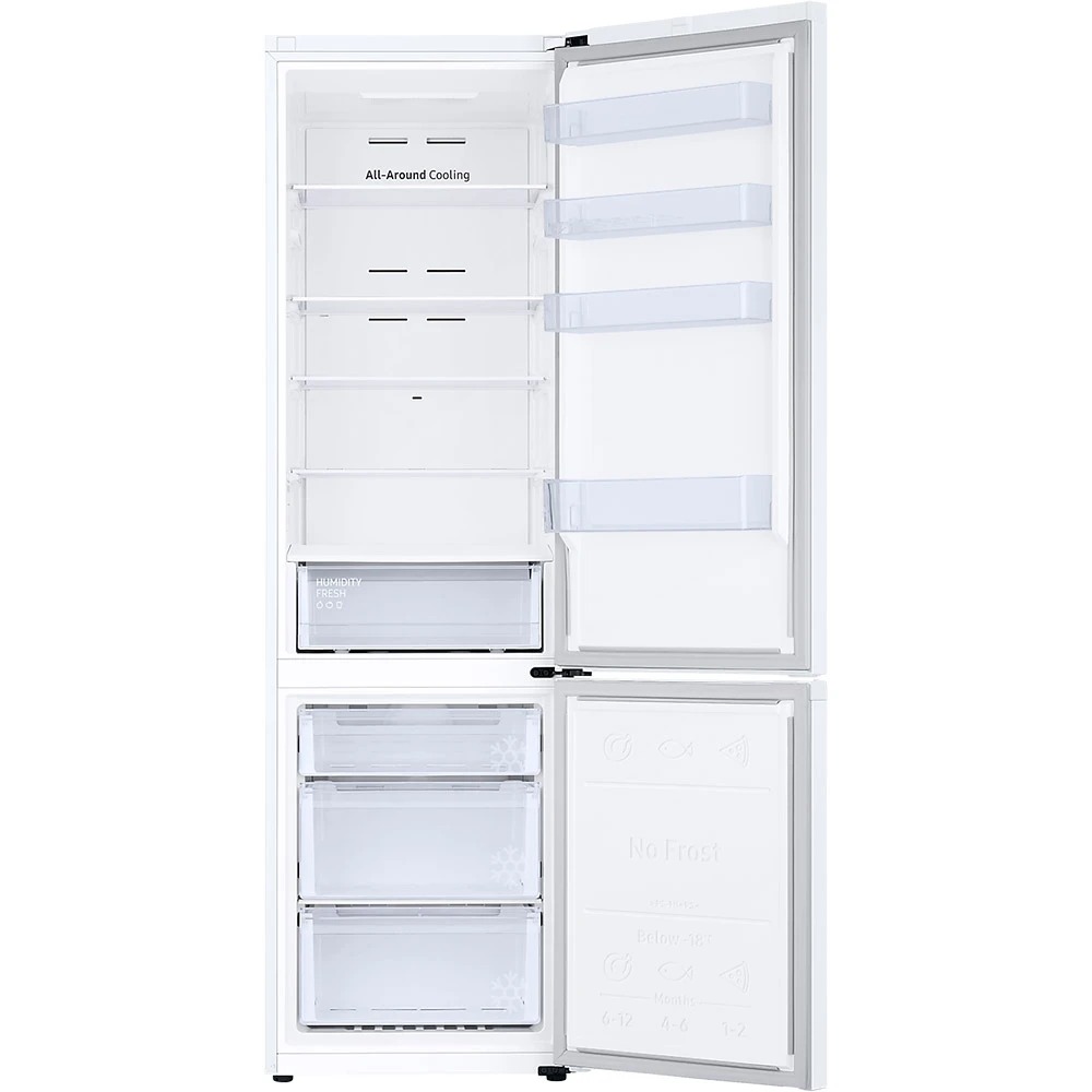 Гарантирует, что вся ваша еда надлежащим образом охлаждена. Система всестороннего охлаждения равномерно охлаждает каждое отделение от угла до угла. Она постоянно проверяет температуру и обеспечивает циркуляцию холодного воздуха через оптимально расположенные вентиляционные отверстия.