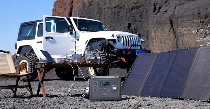 - от солнечных панелей (500 Вт) — использование экологичной энергии солнца, особенно удобно в походах или на природе.
