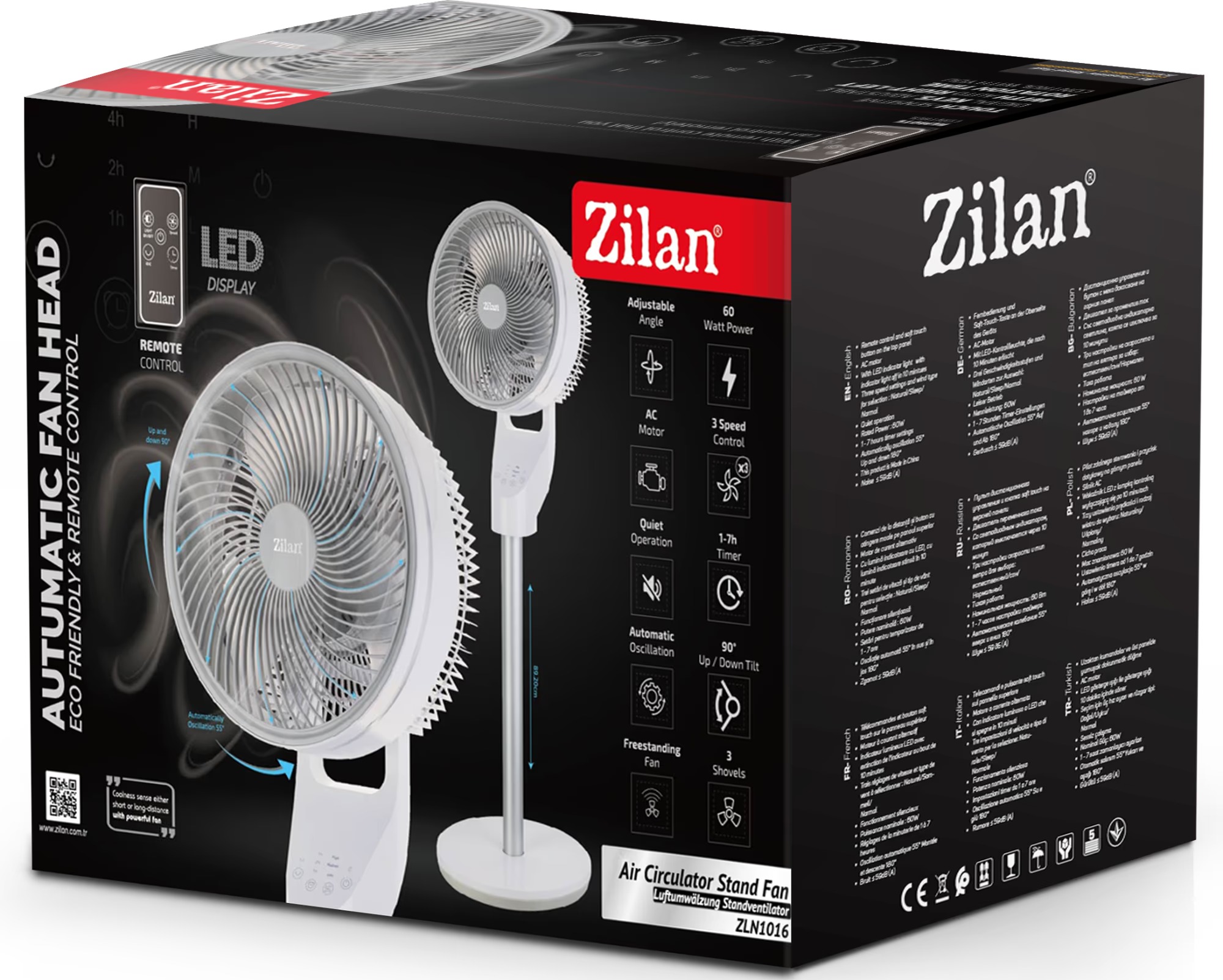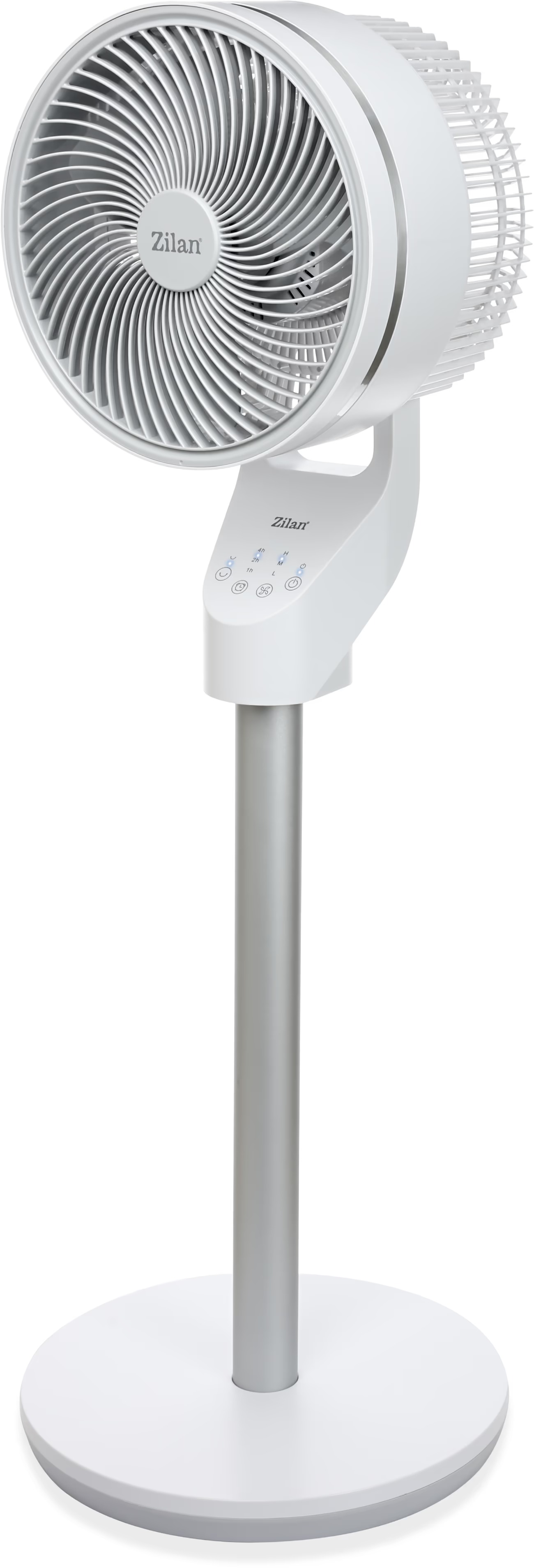 Мощный и функциональный напольный вентилятор Zilan ZLN1016 с вращением в двух плоскостях, таймером, LED индикацией и дистанционным управлением. Идеально впишется в любой интерьер и создаст комфортную атмосферу в офисе или доме. Три режима работы позволяют выбрать оптимальную интенсивность обдува, а поворотный механизм обеспечит равномерное распределение потока воздуха по всей территории помещения.